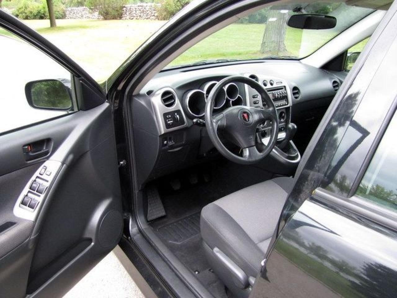 This 2007 Pontiac Vibe 4dr LOADED!! NEW TIRES!! GM LEASE RETURN!! Hatchback features a 1.8L L4 FI 4 cyl Gasoline engine. It is equipped with a Manual transmission. The vehicle is Black with a Black Cloth interior. It is offered with the remaining factory warranty. Over 400 BETTER used cars in stock!! PLEASE CALL 1-866-348-8146 5.99% Financing + no payments up to 6 months available on approved credit!! Free Trial Exchange!! A+ Better Business Bureau rating!! Voted Guelph's Favourite dealer 2004-2009!! Since 1961. Taxes, licensing, and $5.00 OMVIC fee are extra. Former daily rental. Call for details on our Free Trial Exchange! Thank you for considering Wilsons!!! Please call 1-866-348-8146. - This Pontiac is in Excellent overall exterior condition, Excellent overall interior condition, Cloth seats - Air Conditioning, Cruise Control, Power Steering, Power Windows, Power Door Locks, Power Mirrors, Clock, Tachometer, Digital Info Center, Tilt Steering Wheel, Driver Airbag, Passenger Airbag, Keyless Entry, ABS Brakes, Rear Defogger, Intermittent Wipers, AM-FM, CD Player, Wheels, Cloth Interior Surface - Contact The Internet Department at 866-738-6045 or leads@markwilsonsbetterusedcarstc.dealer.com for more information. -