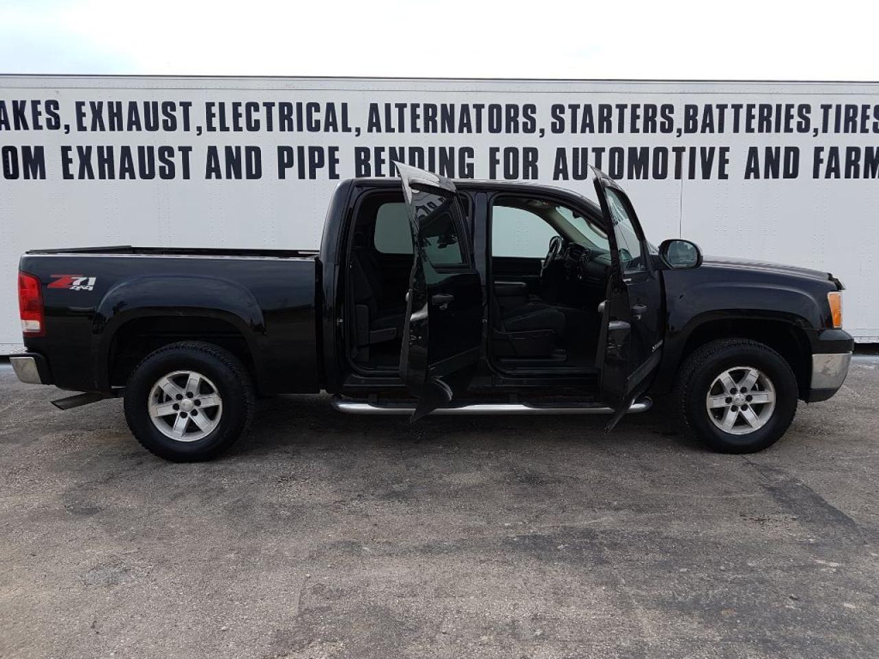 Check out this Loaded Sierra! Black Exterior! Alloys! Remote Start! Tow Package! Chrome Bug Deflector & Grille! VERY sharp looking 4x4 Crew Cab. This truck has been dealer serviced. Come take a look today, you wont be disappointed!