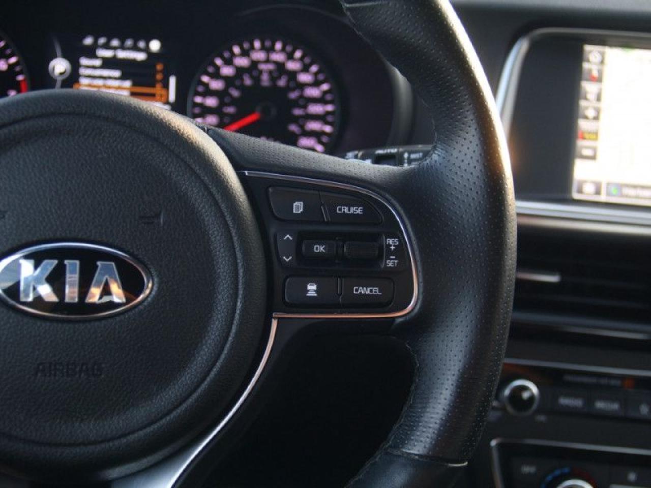 Our Optima's trim level is SXL Turbo. This top of the range Optima SXL Turbo is undeniably a powerful family car offering a safe, sporty, yet extremely comfortable ride. Premium options include a voice-activated navigation system and a Harman Kardon multimedia system with QuantomLogic surround technology, wireless phone charging, Android Auto and Apple CarPlay, Bluetooth streaming audio with SiriusXM satellite radio. You will also get lane departure warning, 360 camera's, rear parking sensors, blind spot detection sensor, autonomous emergency braking with forward collision alert, rear cross traffic collision alert and a large number of occupant safety airbags. Stylish aluminum wheels and metal look interior accents, heated and cooled Nappa leather power front bucket seats, distance pacing cruise control, a sport leather steering wheel and memory settings for driver's seat finnish off the long list of incredible features. This vehicle has been upgraded with the following features: Navigation, Sunroof, Leather Seats, Cooled Seats, Heated Seats, Premium Sound Package, Blind Spot Detection.