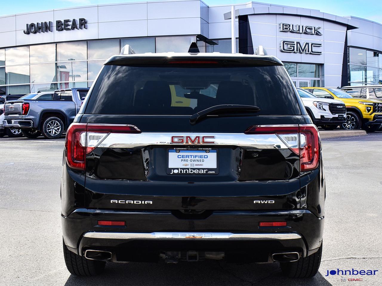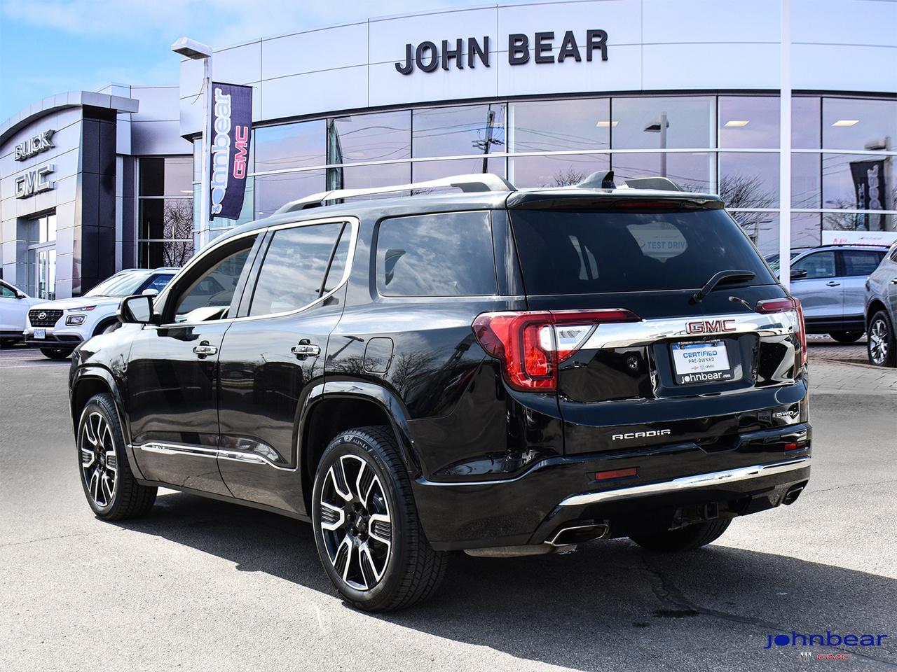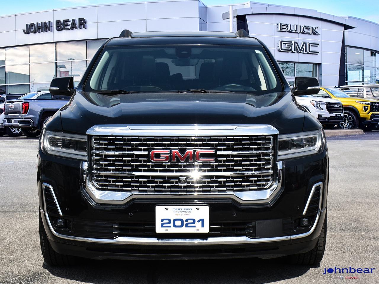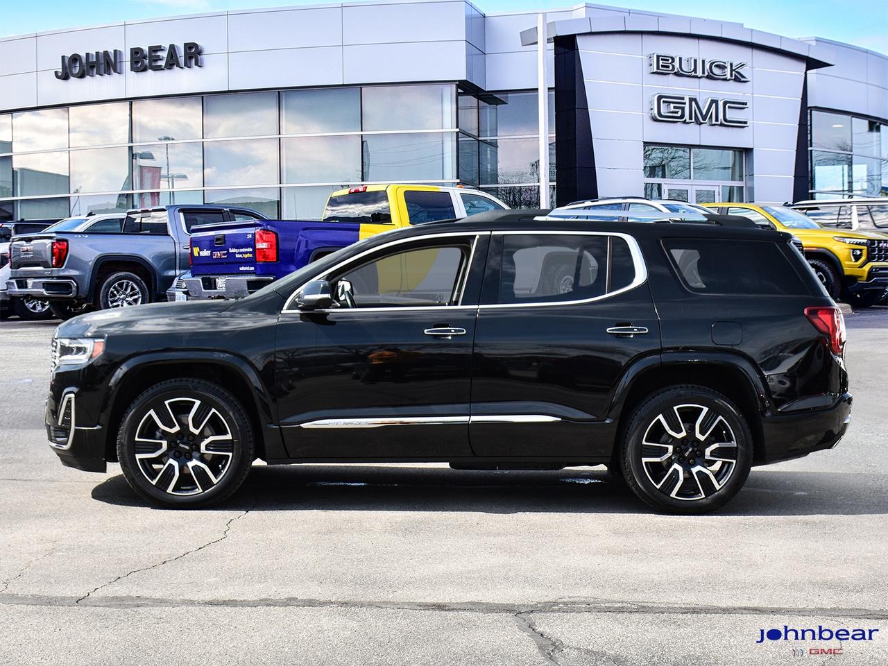 2021 GMC Acadia Denali *REMOTE START*, *LEATHER*, *PANORAMIC ROOF*, *NAVIGATION*, *BACK-UP CAMERA*, *LOCAL TRADE*, *GM FACTORY CERTIFIED*, *MOONROOF*, *MARKET VALUE PRICING*, *CLEAN CARFAX REPORT*, *LANE DEPARTURE WARNING*, AWD, Jet Black w/Perforated Leather-Appointed Seat Trim. Recent Arrival! 3.6L V6 SIDI 9-Speed Automatic AWD Certified. Certification Program Details: * 3.99% APR Financing on Select Models for 24mo* of PreOwned Vehicles * 3-month or 5,000 kilometres Comprehensive Limited Warranty Coverage * 24/7 Roadside Assistance * CARFAX® Vehicle History Report Sirius XM 3 months prepaid service * 150-Point Inspection * 30 Days or 2,500 kilometres exchange privilege SEE DEALER FOR ADDITIONAL DETAILS John Bear Buick GMC offers many automotive products and services. When you visit our store, what you can expect is quality both in our selection of pre-owned vehicles and from our world-class sales team. We offer Market Based Pricing with some of the best value in the Niagara region.