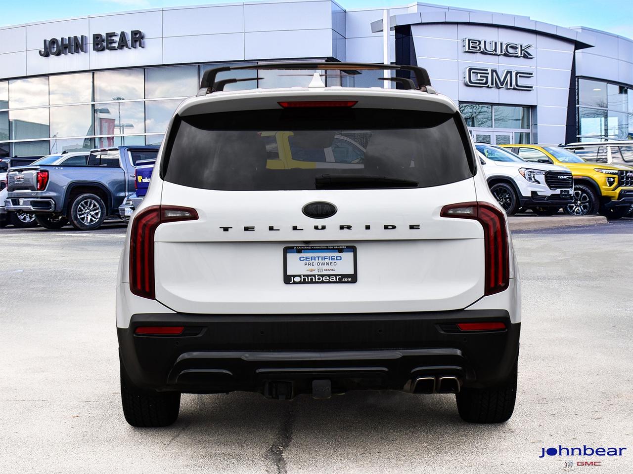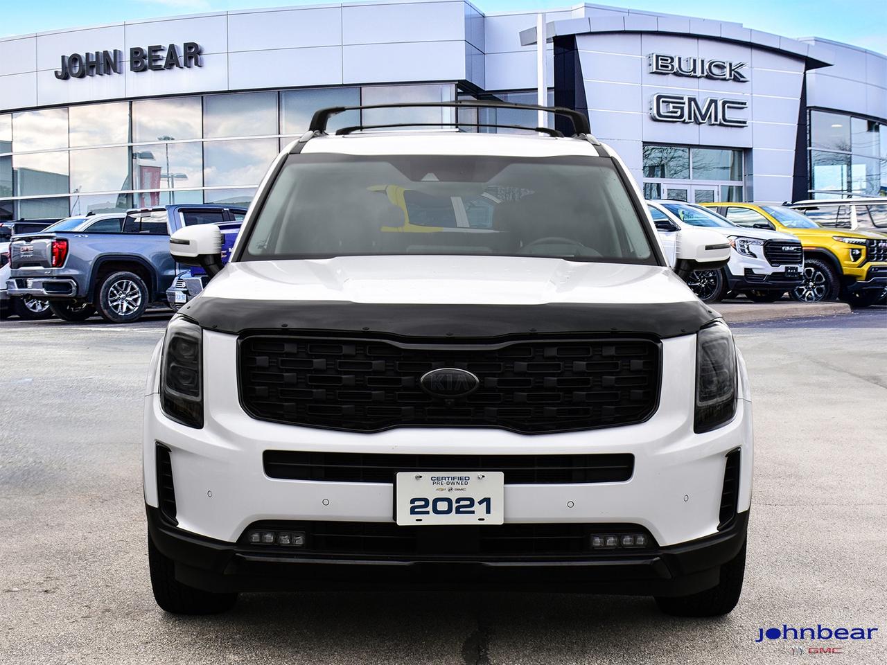 2021 Kia Telluride Nightsky *LEATHER*, *NAVIGATION*, *SUNROOF*, *BACK-UP CAMERA*, *NOT A RENTAL*, *LOCAL TRADE*, *GM FACTORY CERTIFIED*, *MARKET VALUE PRICING*, BLACK ALLOYS, NIGHTSKY PKG., ABS brakes, Active Cruise Control, Alloy wheels, Compass, Electronic Stability Control, Front dual zone A/C, Heated door mirrors, Heated front seats, Heated rear seats, Illuminated entry, Leather Seat Trim, Low tire pressure warning, Navigation System, Power Liftgate, Power moonroof, Remote keyless entry, Traction control. 3.8L V6 8-Speed Automatic AWD Certified. Certification Program Details: * 3.99% APR Financing on Select Models for 24mo* of Pre-Owned Vehicles * 3-month or 5,000 kilometres Comprehensive Limited Warranty Coverage * 24/7 Roadside Assistance * CARFAX® Vehicle History Report Sirius XM 3 months prepaid service * 150-Point Inspection * 30 Days or 2,500 kilometres exchange privilege SEE DEALER FOR ADDITIONAL DETAILS John Bear Buick GMC offers many automotive products and services. When you visit our store, what you can expect is quality both in our selection of pre-owned vehicles and from our world-class sales team. We offer Market Based Pricing with some of the best value in the Niagara region.