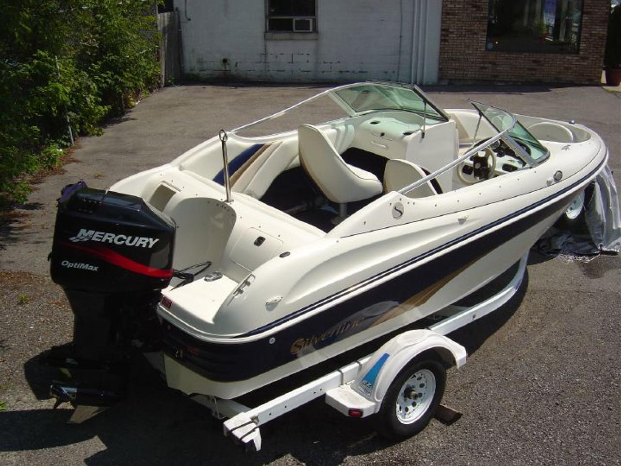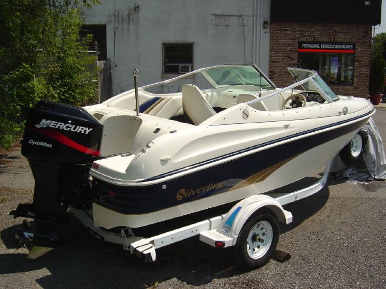 END OF SUMMER BLOWOUT! WAS $15,990! 2001 18' Silverline with 2001 Mercury 150 Optimax. Extremely low hours, Stored indoors since new, never left on water, seldom trailered. excellent sound system with dual Bazooka tubes. Turnkey package includes water-skis, life jackets, ski tube, paddles, ski mast, single axle ez-loader trailer. Boat runs high 50's low 60's and can pull multiple skiers. Will plane with 9 or 10 passengers. Not for the faint of heart!