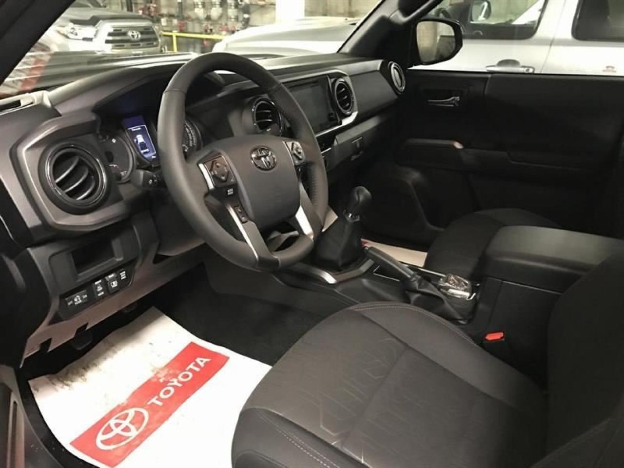 Toyota Tacoma Double Cab TRD 2017Régulateur de vitesse, Servo-direction, Servo-freins, Toit ouvrant, Essuie-glaces intermittents, Freins ABS, Contrôle de stabilité, Coussins gonflables latéraux, Lecteur CD, Déverrouillage à distance, Miroirs chauffants, Miroirs électriques, Vitres électriques, Sièges chauffants, Volant ajustable, Radio satellite, Radio AM/FM, Contrôle de traction, Phares antibrouillards, Climatisation