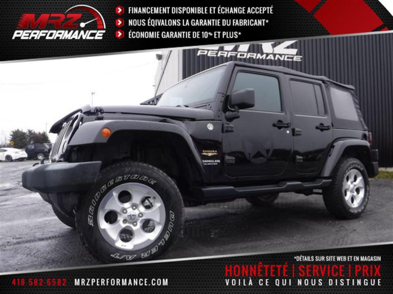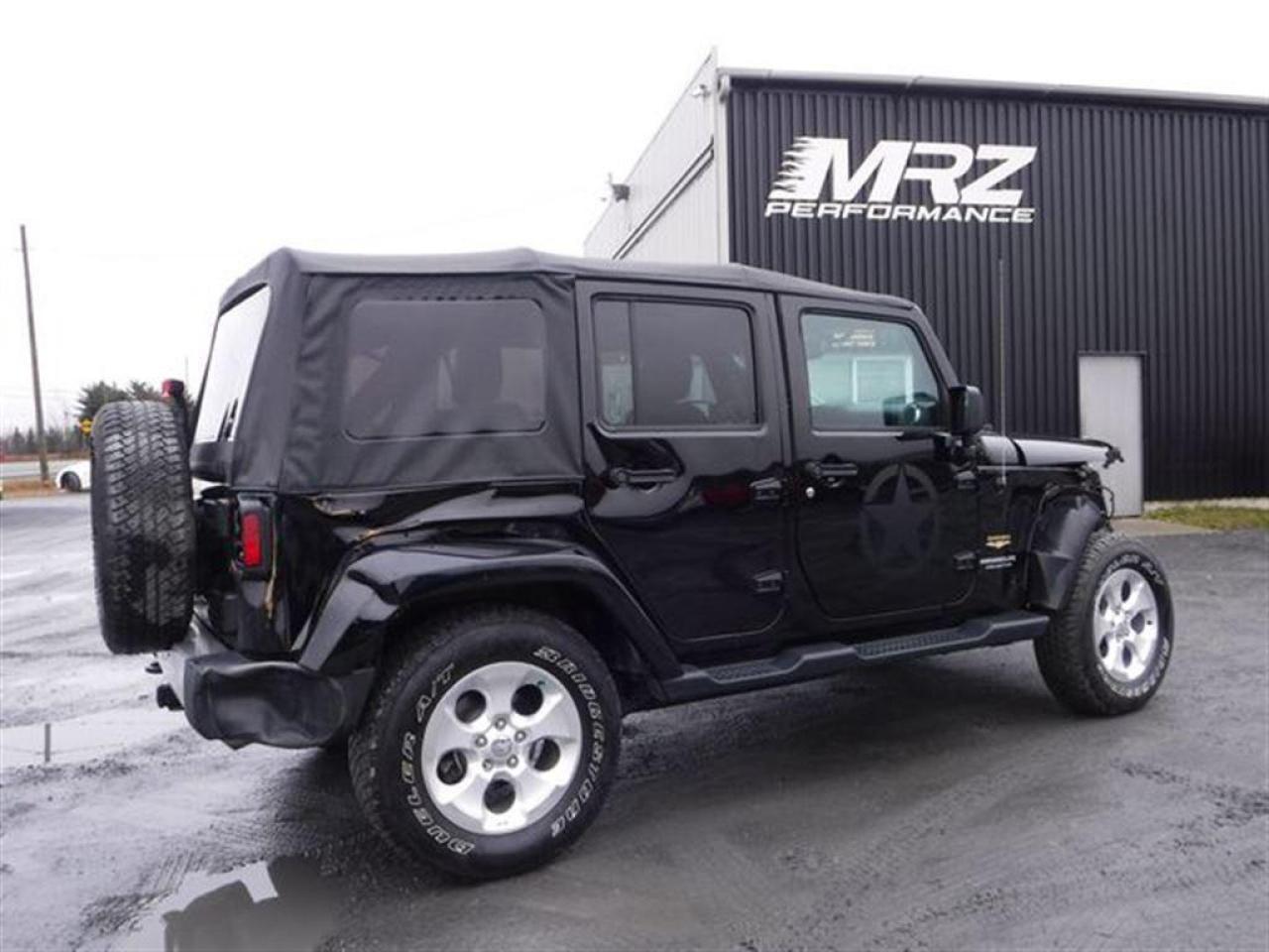 Jeep Wrangler Unlimited Sahara 2015 Noir métallique. Un superbe Jeep tout équipé avec le GPS et encore plus! Véhicule très populaire, ne manquer pas la chance de vous procurez ce beau petit jouet! Il est a l'état neuf! EXTRA CLEAN!! Un autre beau Wrangler dans notre bel inventaire de Jeep légèrement accidenté!! BALLONS ET CEINTURES INTACTS!! - * Visitez le WWW.MRZPERFORMANCE.COM pour tous les détails et beaucoup plus de photos! * ÉTAT NEUF avec seulement 17 800 km - 4x4 Lo/Hi - Moteur V6 3.6l nouvelle génération avec transmission automatique - Très puissant, près de 300HP!! - Mags 18'' avec pneus Bridgestone Dueler en très bonne état!! - Modèle Sahara FULL ÉQUIP : Vitres teintées - Commandes au volant - Prise 12V / 115V - Lecteur CD/MP3 - Wiper intermittents - Cruise control - Prise USB - Sélecteur 4WD/2WD - Fog lights - Moulures d'ailes peinturés - Toit mou - Miroirs électriques et chauffants - Vitres électriques - Bluetooth - Système navigation GPS avec grosse écran tactile - Sirius - A/C - Console centrale - Chauffe moteur - Jeep UConnect - Door lock - Sièges avant chauffants - 1X Clé avec Démarreur OEM - Marchepieds - Towing package - Automatique - etc! Accidenté à l'avant ainsi qu'à l'arrière droit du véhicule seulement. Pour la réparation, Besoin du Parebrise, 2X Ailes avant, Moulure d'aile avec Fausse aile avant droit, Hood, Boitier filtre air, Support radiateur, Lumière avant droit, Grille avant, Fan, Bumper avant assemblé, Barre transversale de métal avant, Réserve lave glace, Mag et Pneu pour le spare, Bumper arrière, Tail light droit, Quater droit, Moulure d'aile arrière droit, Drive shaft avant, Bras suspension inférieur avant droit, Amortisseur avant droit, Link avant droit et de quelques plastiques de finitions. A réparé: Porte avant gauche (légèrement), 2X Longerons avant supérieurs, Toit mou (légère déchirure voir photo) et la Porte arrière droit. La Section de frame avant est a réparé ou changé ( au goût du client). Le Housing du différentiel avant est bon mais les brackets sont a réparés ou changés (au goût du client). Les Radiateurs sont a vérifier. Le Mag arrière droit est égratigné. Ce superbe Jeep est présenté tel que nous l'avons acheté, pas étiré et pas camouflé comme chez la compétition. Aucun camouflage de dommages sur nos véhicules! Très peu de dommages et très facile a réparé sans se ruiner. Tous les Ballons et les Ceintures sont intacts. Nous pouvons vous fournir les pièces nécessaires à la réparation de ce véhicule à prix très compétitif. Disponible tel quel ou réparé par des professionnels et inspecté par la SAAQ - Vraiment un superbe Wrangler Sahara tout équipé avec le GPS!! À NE PAS MANQUER!! VUS en demande!! Vraiment comme neuf!! Seul. 17 800km au compteur!! Condition impeccable!! CE JEEP N'A JAMAIS FAIS DE HORS ROUTE!! ULTRA CLEAN ! On vous met au défi de trouver meilleur qualité prix chez la concurrence!! ** VGA QUÉBEC / SALVAGE TITLE ** - Plusieurs autres VUS ET CAMIONNETTES en inventaire - AUCUN CAMOUFLAGE DE DOMMAGES SUR NOS VÉHICULES! *** Membres AMVOQ - Venez nous voir ou allez visiter notre site internet pour plus d'informations! Automobiles MRZ, la référence dans l'accidenté léger au Québec WE SPEAK ENGLISH PLEASE CONTACT US - MRZ IS THE VEHICLE CAR EXPORT and IMPORT SPECIALIST - USA - AFRICA - MIDDLE EAST - EUROPE - MRZ EST LE SPÉCIALISTE EN EXPORTATION et IMPORTATION DE VÉHICULES - USA - AFRIQUE - EUROPE - PROCHE ORIENT ! Visitez-nous aussi sur Facebook! Merci!