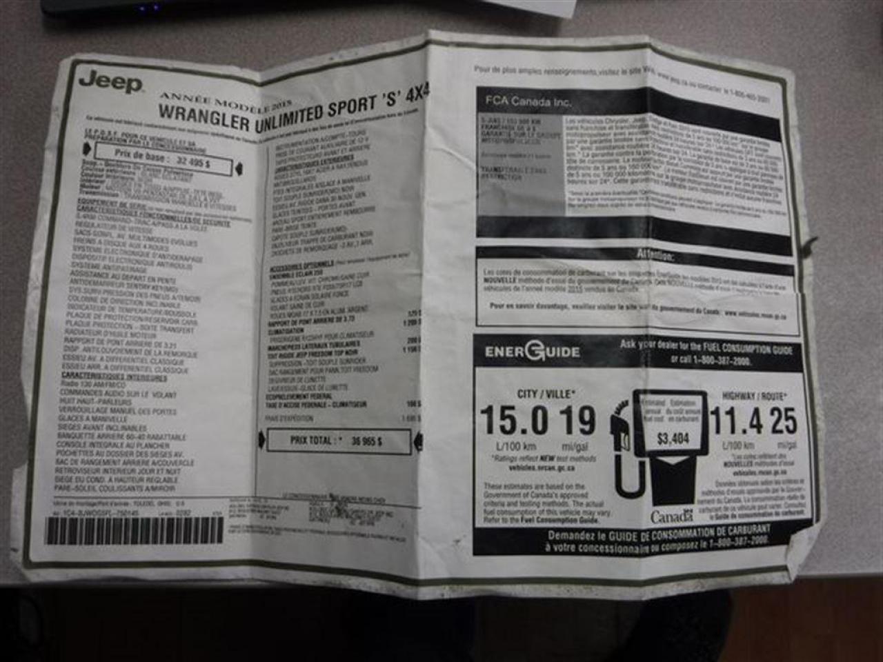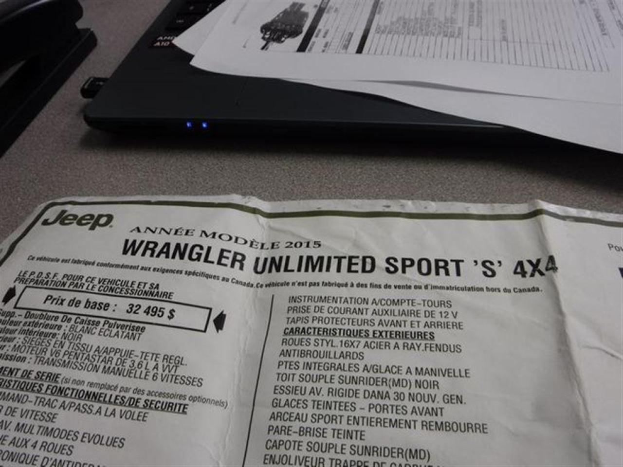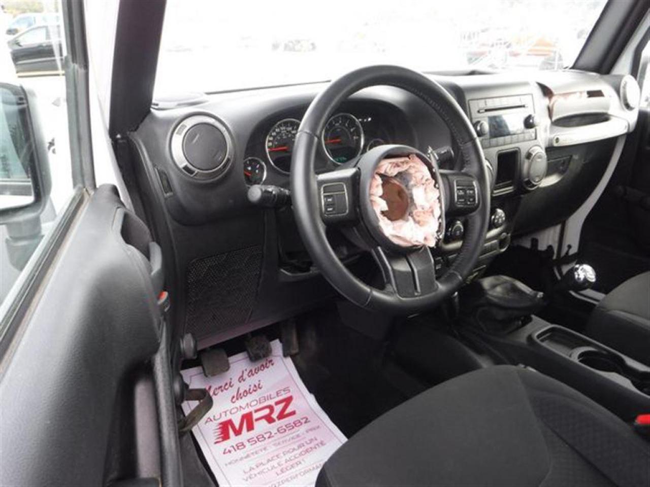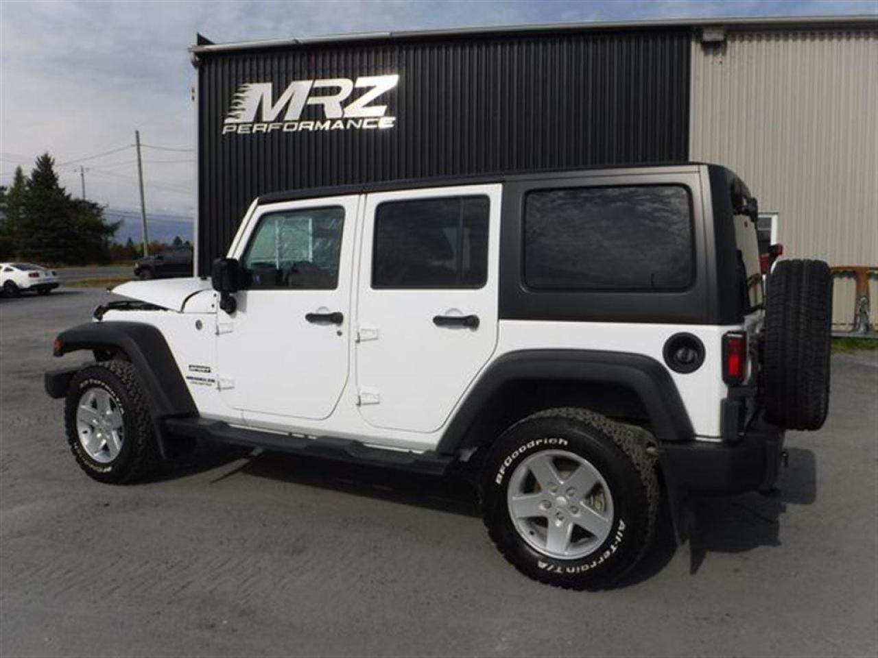 Jeep Wrangler Sport 4X4 2015 Blanc. Véhicule très populaire, ne manquer pas la chance de vous procurez ce beau petit jouet! Idéal pour se promener hors des sentiers!! Très peu de kilo au compteur, Seul. 50 700km!! Superbe Jeep très facilement réparable à faible coût. Faites vite ces Jeep s'envolent comme des petits pains chauds!! Dommages très légers! * Visitez le WWW.MRZPERFORMANCE.COM pour tous les détails et beaucoup plus de photos! Super propre!! * Très bas kilométrage, seulement 50 700km - 4x4 Lo/Hi - Moteur V6 3.6l nouvelle génération avec transmission manuelle a 6 rapports - Très puissant, près de 300HP!! - Mags 17'' avec Pneus All Terrain LT245 70 R17 comme neufs!! - Modèle Sport bien équipé : - Vitres teintées - Commandes au volant - Chauffe-moteur - Prise 12V - Lecteur CD/MP3 - Wiper intermittents - Cruise control - Prise USB - Sélecteur 4WD/2WD - Fog lights - Flares texturés - Toit rigide texturé - Console centrale - 1X Clé - A/C - Marchepieds - Towing package - Garde boue - etc! Accidenté à l'avant seulement du véhicule. Pour la réparation, Besoin du Pad dash, Parebrise, Grille de wiper, Aile avec Fausse aile et Flare avant droit, Longeron supérieur droit, Hood, Rack de batterie, Lumière avant droit, Support radiateur, Radiateur, Condenseur, Fan, Grille avant, Bumper avant assemblé, Fog droit, Boitier filtre air, Traverse de métal avant et de quelques plastiques de finitions. A réparé: Marchepied de cabine avant droit (très léger), 2X Portes avant (léger), Cadre de parebrise, Aile avant gauche (ou a changer) et la Réserve lave glace ( ou a changer). La pointe de frame avant droit est a réparé. Les 2X Mags gauche sont égratignés. Très facilement réparable pour vraiment pas cher. Le ballon volant, Ballon passager ainsi que les 2X Ceintures avant sont déployées (très abordable chez le dealer). Tous les autres Ballons et les autres Ceintures sont intacts. L'option d'un Devant complet pourrait être pris en considération pour la réparation de ce véhicule. Nous pouvons vous fournir les pièces nécessaires à la réparation de ce véhicule à prix très compétitif. Disponible tel quel ou réparé par des professionnels et inspecté par la SAAQ - DIFFÉRENTIELS INTACTS!!! Pas d'impact subit dans les roues, suspension et direction en parfaite état!! Vraiment un superbe Wrangler Sport, VUS en demande!! Idéal pour faire du hors route!! Vraiment un très beau bijou à ne pas laisser passé!! Très peu de kilo au compteur!! Valeur neuf de plus de 37 000$ sur la feuille de vitre Jeep. Impossible de trouver meilleur qualité prix chez la compétition. Encore une fois Automobiles MRZ frappe fort avec les plus beaux véhicules sur le marché! ** VGA QUÉBEC / SALVAGE TITLE ** Plusieurs autres VUS ET CAMIONNETTES en inventaire - AUCUN CAMOUFLAGE DE DOMMAGES SUR NOS VÉHICULES! *** Membres AMVOQ - Venez nous voir ou allez visiter notre site internet pour plus d'informations! Automobiles MRZ, la référence dans l'accidenté léger au Québec! WE SPEAK ENGLISH PLEASE CONTACT US - MRZ IS THE VEHICLE CAR EXPORT AND IMPORT SPECIALIST - USA - AFRICA - MIDDLE EAST - EUROPE - MRZ EST LE SPÉCIALISTE EN EXPORTATION et IMPORTATION DE VÉHICULES - USA - AFRIQUE - EUROPE - PROCHE ORIENT Visitez-nous aussi sur Facebook! Merci!