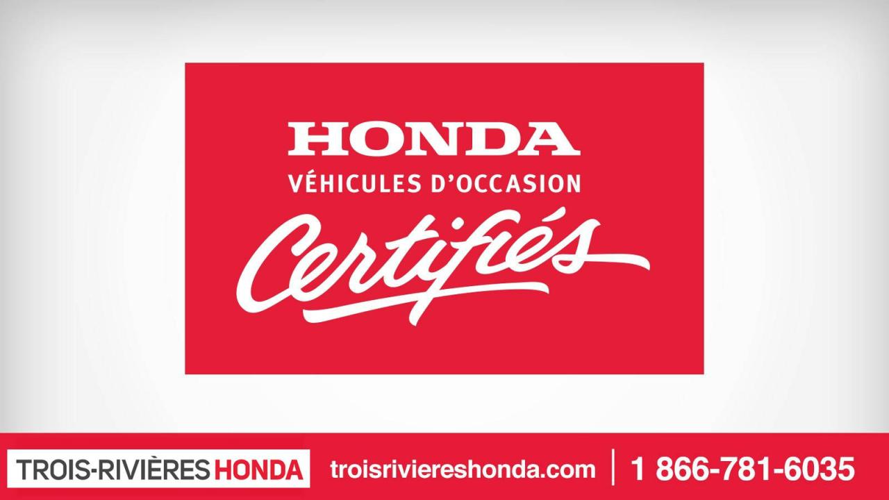 Vous pouvez également profiter du programme Certifié Honda, qui est admissible aux véhicules Honda 2013-2014-2015-2016-2017 d'occasion. La garantie de 7 ans/160 000 km (Fit et Civic) ou 6 ans/120 000 km (autres modèles Honda) et les taux de financement avantageux à partir de 2.99% sont disponibles selon le modèle sélectionné. Contactez un conseiller d'occasion ou faites une demande de crédit en ligne au www.troisriviereshonda.com